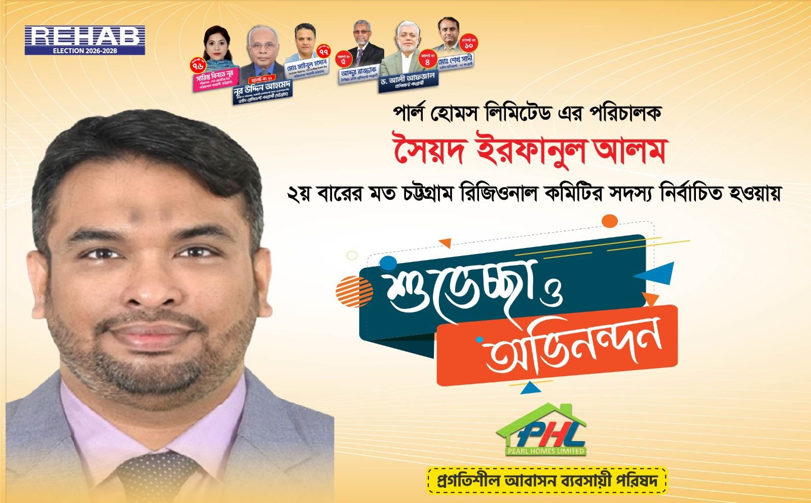 আবাসন ব্যবসায়ীদের শীর্ষ সংগঠন রিহ্যাব (REHAB)-এর নির্বাচনে বিপুল ভোটে দ্বিতীয়বারের মতো চট্টগ্রাম রিজিওনাল কমিটির পরিচালক নির্বাচিত হয়েছেন সৈয়দ ইরফানুল আলম।