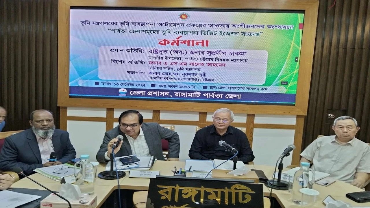 ভূমি মন্ত্রণালয়ের ভূমি ব্যবস্থাপনা অটোমেশন প্রকল্পের আওতায় পার্বত্য জেলাগুলোতে ভূমি ব্যবস্থাপনা ডিজিটাইজেশনের উদ্যোগ শুরু হয়েছে। এই প্রেক্ষাপটে শবিবার(১৩ সেপ্টেম্বর) রাঙামাটি জেলা প্রশাসকের সম্মেলন কক্ষে অনুষ্ঠিত হলো এক বিশেষ কর্মশালা।